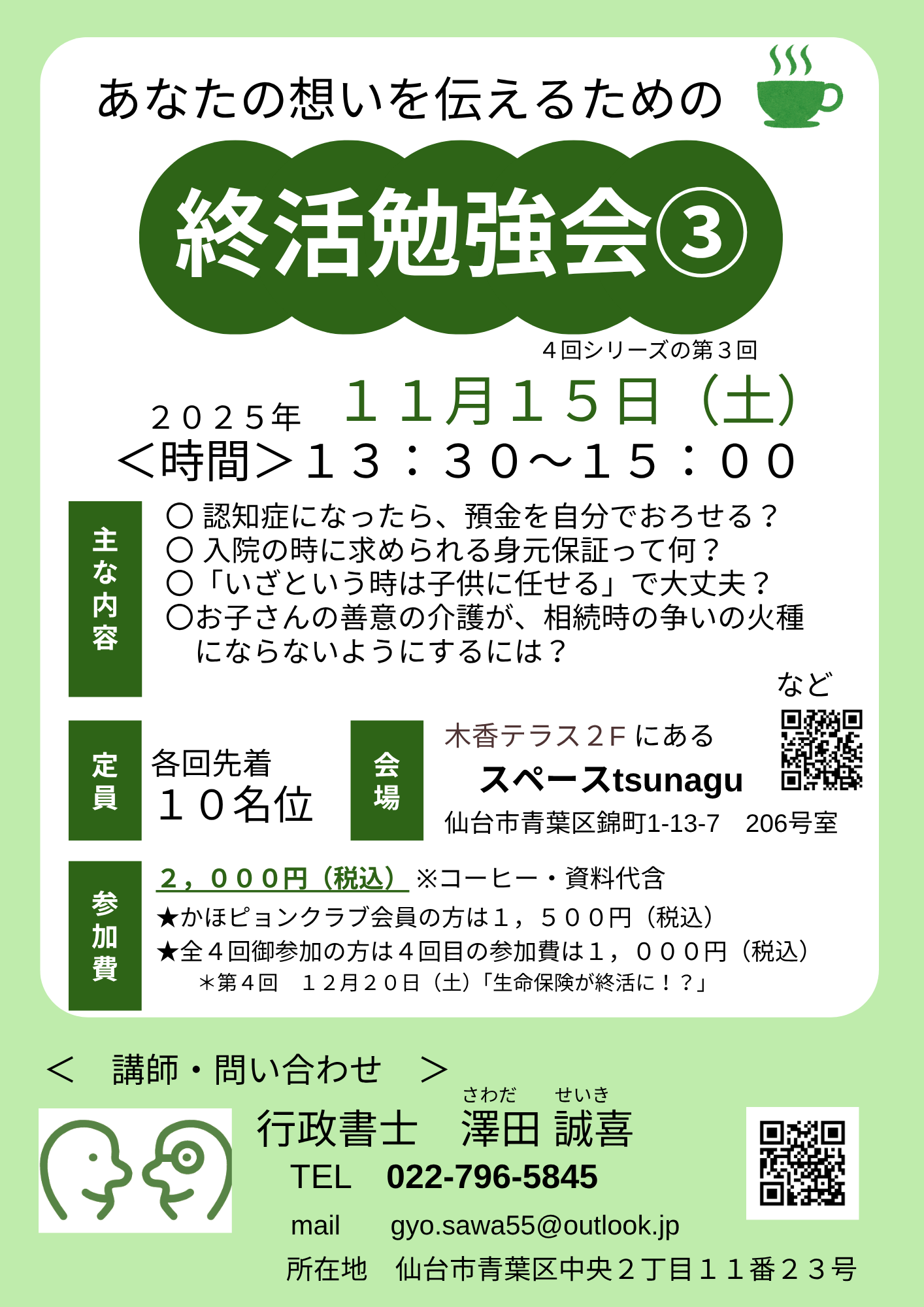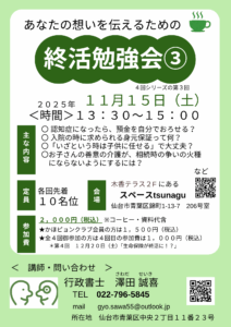 中高年の「もしも」の時への備え~第3回終活勉強会~